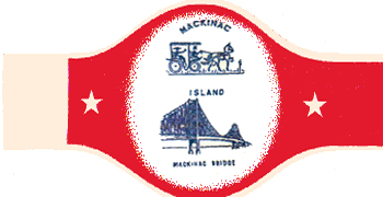 MACKINAC (/\) / * (une calèche) / ISLAND / * (un pont suspendu ) / MACKINAC BRIDGE |