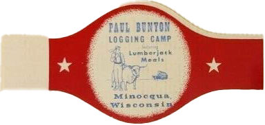 PAUL BUNYON / LOGGING CAMP / Lumber jack / Meals / Minocqua, / Wisconsin (au centre un personnage avec une vache) |